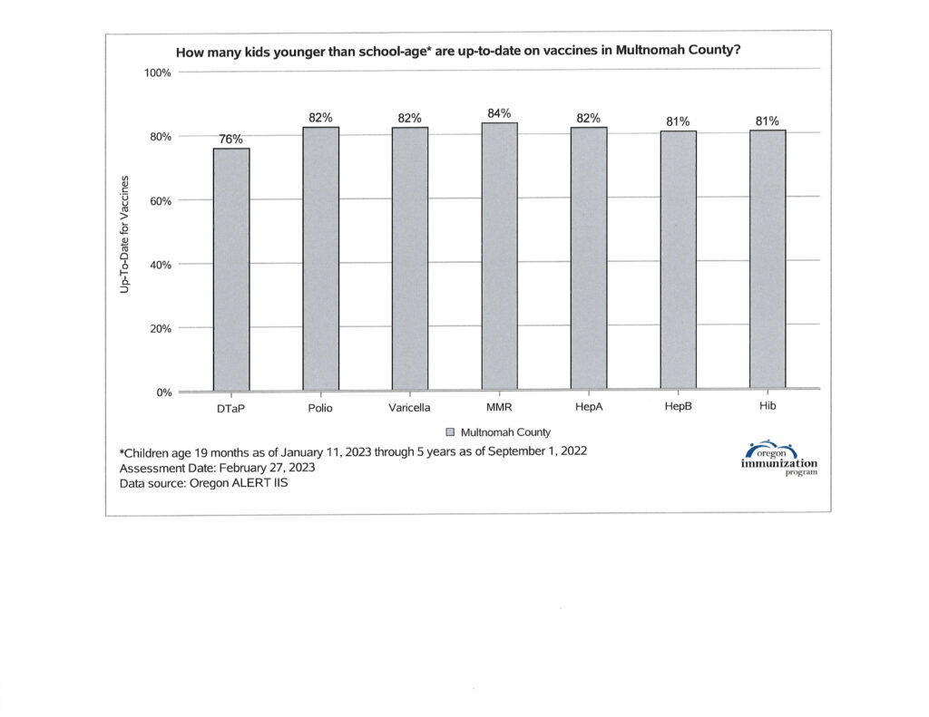 In 2015 the Oregon State Legislature passed a law requiring that all schools, preschools, child care facilities, and Head Starts post the immunization and exemption rates for their facilities and their local community.
